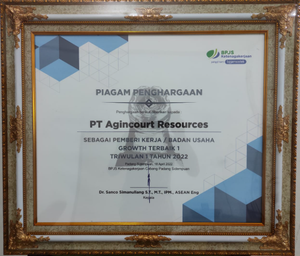 Best Growth Company Award 1st Rank in 2022 from the Padangsidimpuan Branch Employment Social Security Administration Agency (BPJS)
