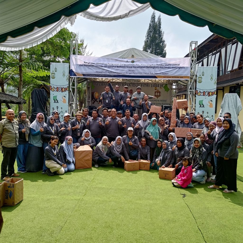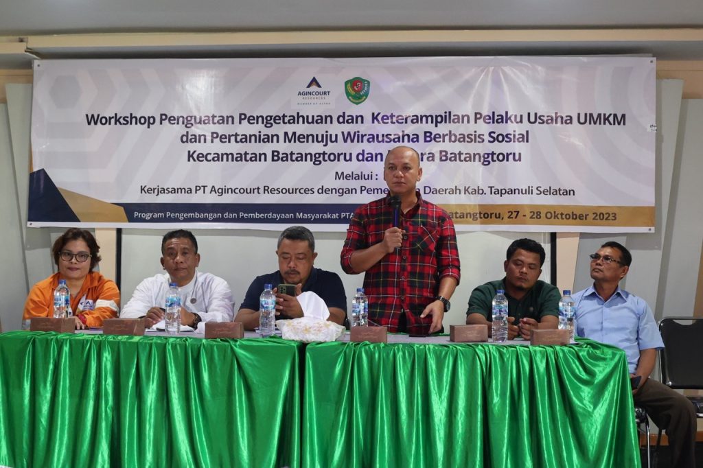 During the weekend of October 27-28, 2023, Micro, Small, and Medium Enterprises (MSMEs) as well as agricultural communities from the Batangtoru and Muara Batangtoru Sub-Districts, fostered by PT Agincourt Resources (PTAR), participated in a workshop focused on enhancing knowledge and skills in social entrepreneurship and team building. The workshop was held at the Berkah Doorsmeer meeting room in Sumuran Village, with team building activities taking place at Aek Sabaon, Sibio-bio. A total of 47 MSMEs and agricultural participants, mentored by PTAR, actively took part in this event.