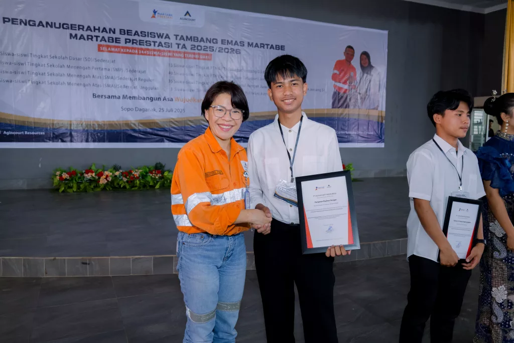 On Friday, July 27, 2025, 569 students from Tapanuli Selatan Regency and Padangsidimpuan City were awarded the Martabe Prestasi Scholarship during a ceremony held at Sopo Daganak, Napa Village, Batang Toru District. The event was organized by Agincourt Resources as part of the company’s commitment to improving education quality and human resource development in the communities surrounding its operations.