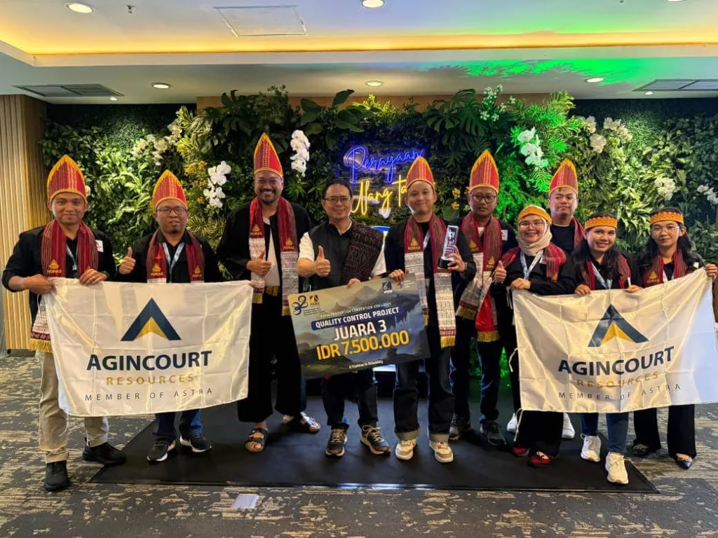 Agincourt Resources achieved third place in the Quality Control Project (QCP) category through the Horas Jaya Bersatu team from the Mining, Geotech& Survey and Mine Geology Department at the PAMA Innovation Convention XXV – 2025 in Jakarta on 27 September 2025, with their innovation titled “Increase Ore Recovery and Material Movement.”
