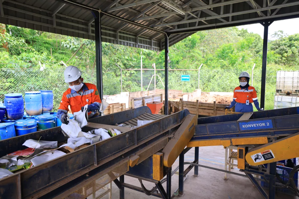 The management of used jumbo bags from mining activities is also carried out sustainably through collaboration with waste banks in the operational area. Jumbo bags that are no longer fit for use are collected, sorted, and either reused or recycled by community partners. This approach helps extend the life cycle of materials while reducing environmental pressure from industrial waste.