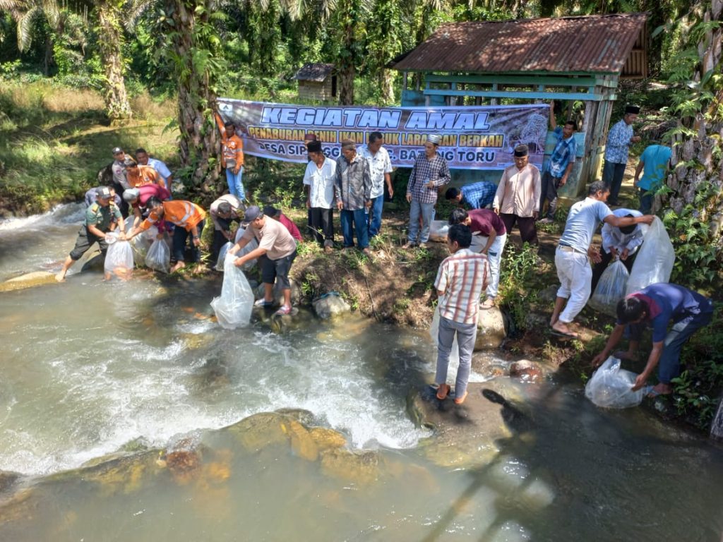 PT Agincourt Resources (PTAR) memberikan bantuan bibit ikan kepada masyarakat Desa Sipenggeng Kecamatan Batangtoru pada Rabu, 15 November 2023. Bibit ikan yang terdiri dari 300 kg ikan mas dan 6000 ekor ikan jurung ini dilepas di lubuk larangan Berkah Desa Sipenggeng.