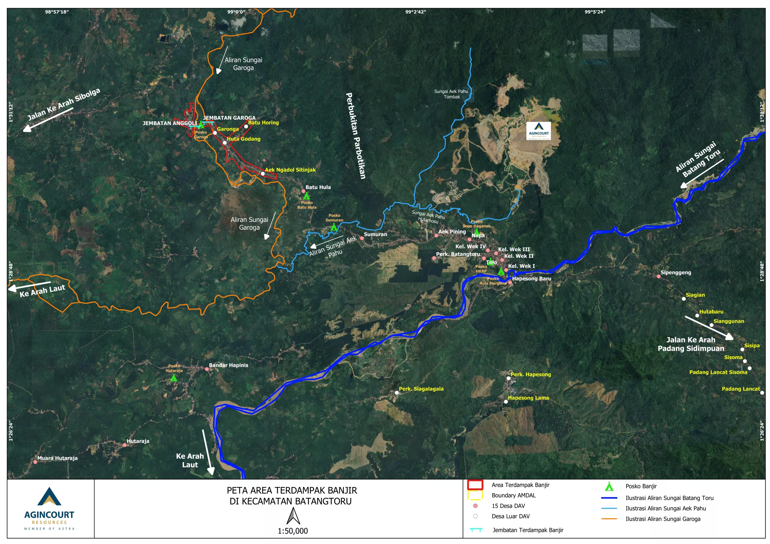 Kami juga telah mendirikan Posko Penanggulangan Bencana di Desa Batu Hula, Desa Sumuran, dan Sopo Daganak sebagai pusat bantuan dan layanan kesehatan. Agincourt Resources terus berkoordinasi dengan pemerintah, relawan, dan berbagai pihak demi mendukung pemulihan yang aman dan tepat sasaran.
