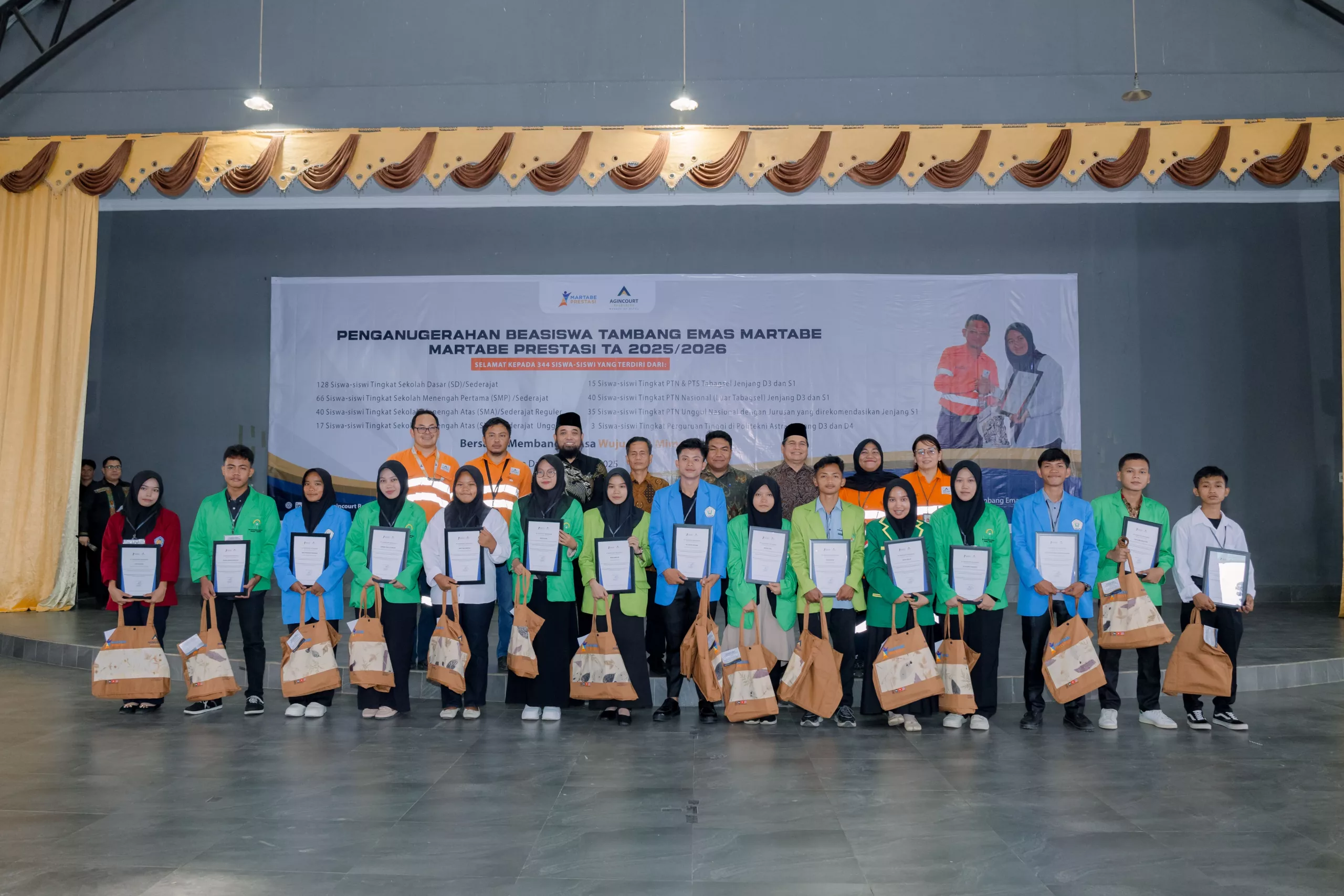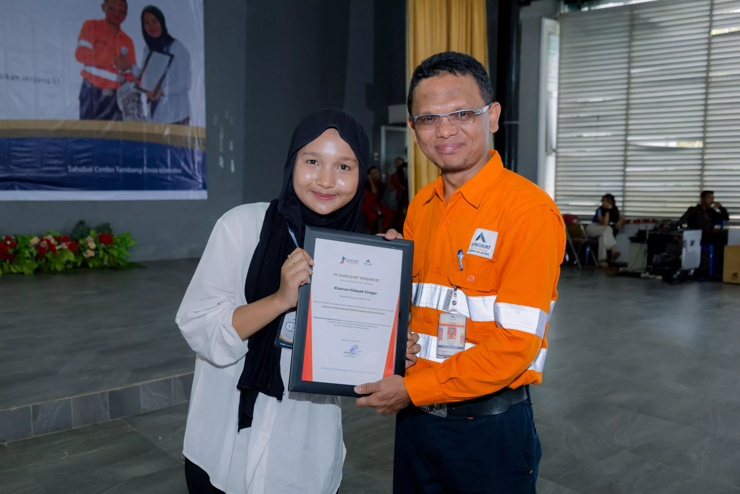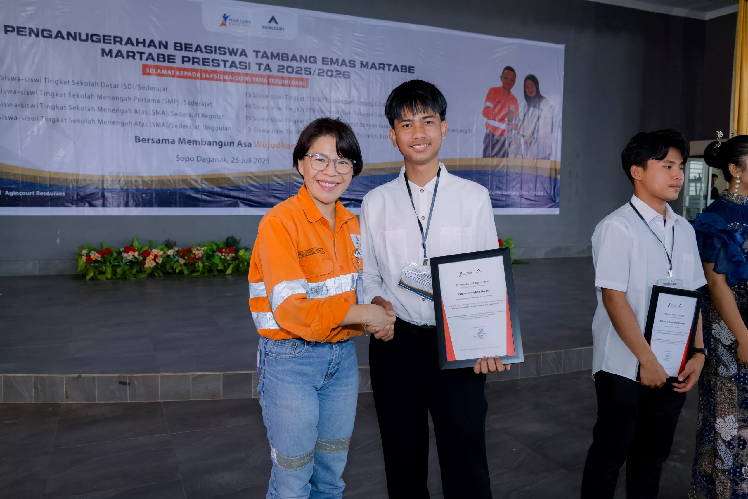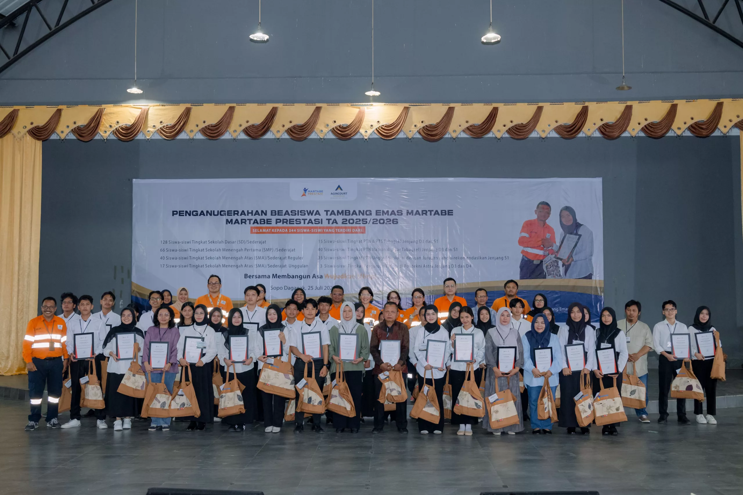 On Friday, 25 July 2025, Agincourt Resources held the Martabe Achievement Scholarship Award Ceremony for the 2025/2026 academic year at Sopo Daganak, Napa Village, Batang Toru Subdistrict. A total of IDR 5.97 billion in scholarship funds was disbursed to 569 students and university students from South Tapanuli and Padangsidimpuan, North Sumatra.